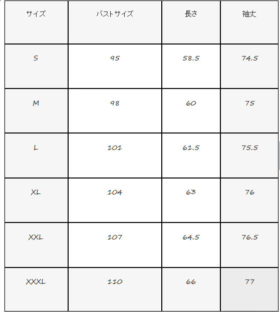 (サイズ表の寸法は商品によって多少誤差がある場合がございますので、予めご了承いただけますようお願いいたします。)
